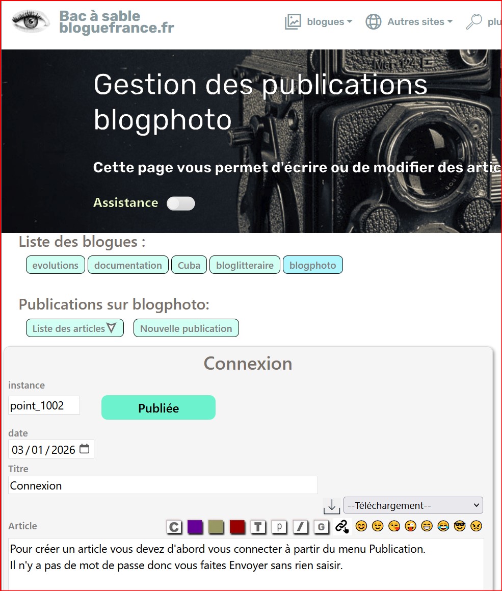 Nous mettons à votre disposition un environnement de test complet (Bac à Sable) pour que vous puissiez manipuler la plateforme à votre guise, créer des publications et découvrir toutes les options disponibles :